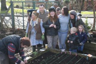 Next was the Greenfingers group at the Chatterbox project in Charlestown – the polytunnel was a hive of activity when we turned up, and Donna Ogden, a youth worker at the project, was keeping the pace fast with all the jobs that needed doing.