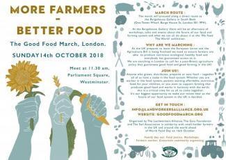 The march will end at the Bargehouse where the international ‘We Feed the World’ exhibition is running. The exhibition is a global photography initiative of over 300 images capturing the triumphs and tribulations of 50 farming communities across six continents, including stories of UK based farmers, seed growers and members of the Landworkers' Alliance.