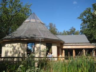 - It has beautiful ecologically-sound buildings made out of a wider range of materials than you can shake a stick at (I’m not quite sure what that saying means, but you get my drift). They use their own timber, but different varieties (one building is larch, one scotts pine), they have a straw bale building, a rammed earth building and are about to build one using cork. Cork isn’t exactly a local material, but using it will help protect the richly diverse forest habitats supported by Portugal’s cork industry, which has gone into serious decline since plastic ‘corks’ and screw tops have grown in popularity.